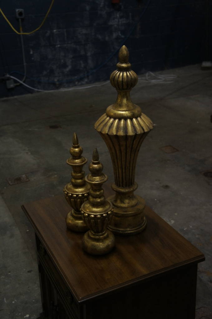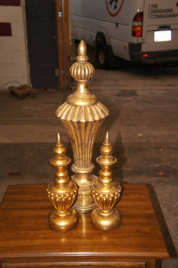 3 Elegant Gold Painted Finials Designer Room Decor Contemporary Mantel Table
