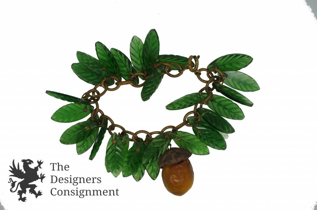 Vintage Costume Jewelry Pinecone Bracelet Plastic Leaves Acorn Bakelite?