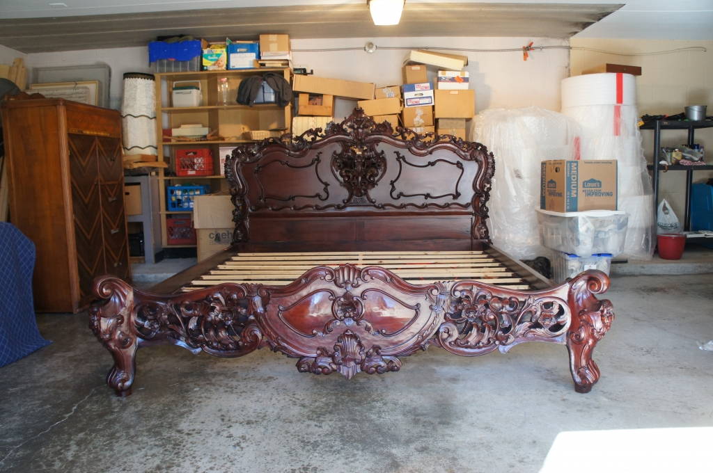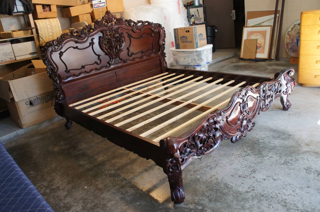 Stunning Baroque Rococo Carved Mahogany King Size Bed W/ Rosewood Finish Vintage