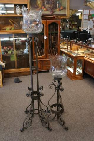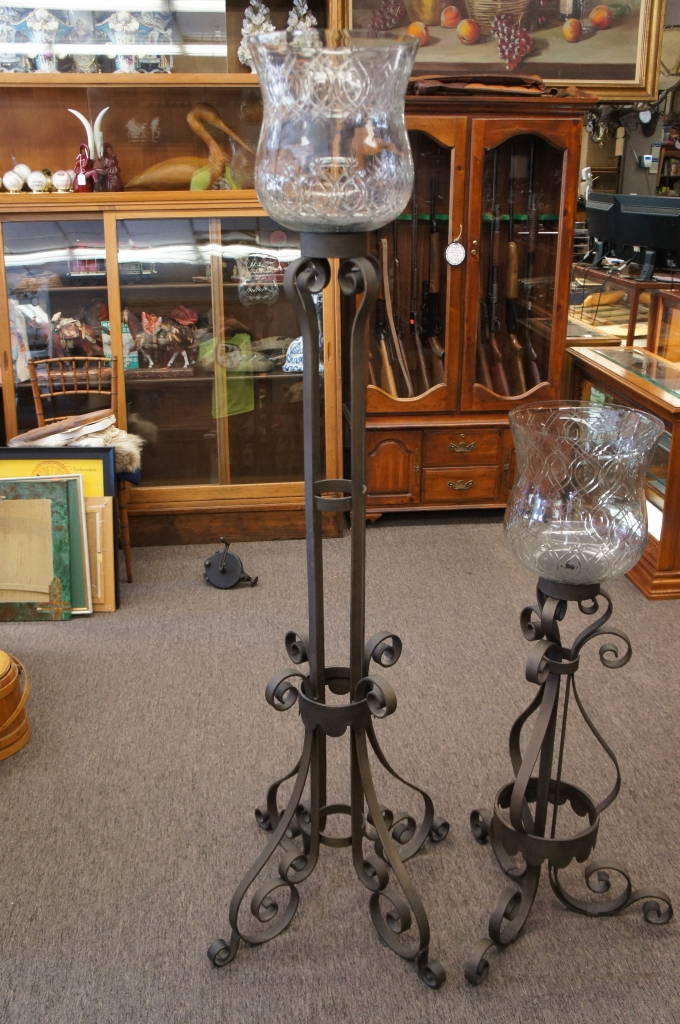 Wrought Iron Candle Holders2 Large Wrought Iron & Tulip Shaped Cut Glass Crystal Candle Holder 44" Stunning