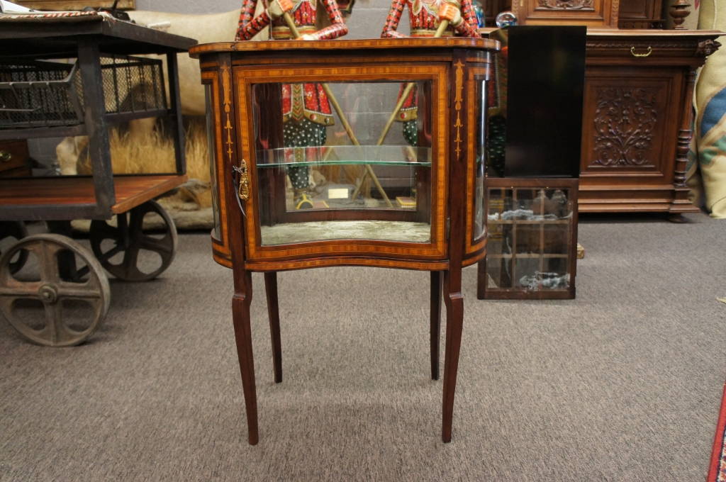 Antique French Marquetry Curio Cabinet Parlor Display Kidney Bean Shaped Table