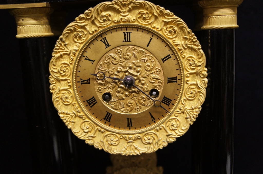 Antique Neoclassical French Portico Clock Gilt Bronze & Glass Dome 19th C Mantel