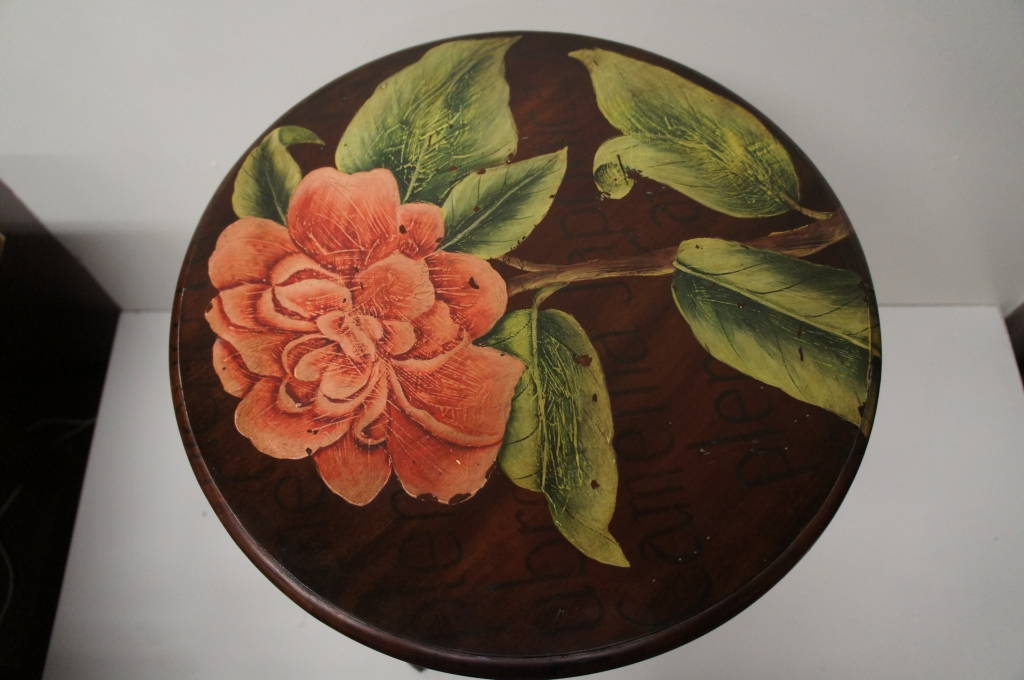 Vintage Guildmaster Mahogany Pedestal Side Accent Table W/ Rose Painted Top