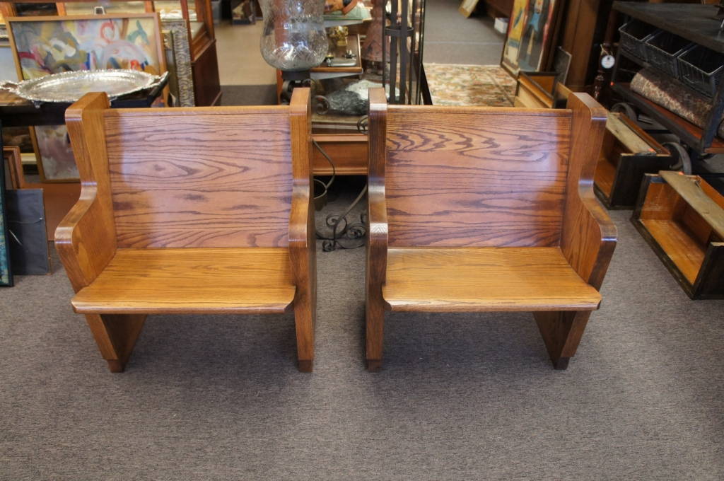 2 Vintage Solid Oak Deacon Bench Seats Church Pew W/ Carved Cross Mid Century