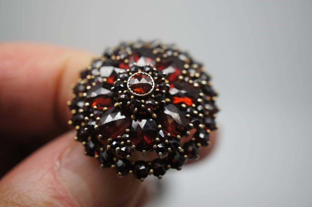 Stunning Antique Victorian Bohemian Red Garnet Star Dangle Necklace Ring Brooch