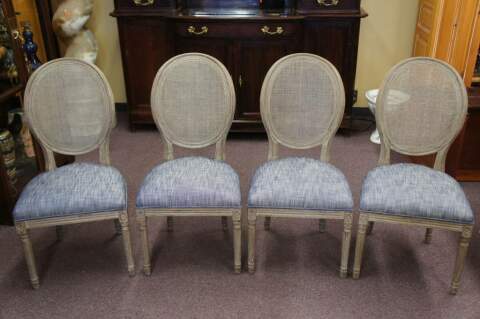 4 Restoration Hardware Vintage French Round Cane Back Fabric Side Chair Country