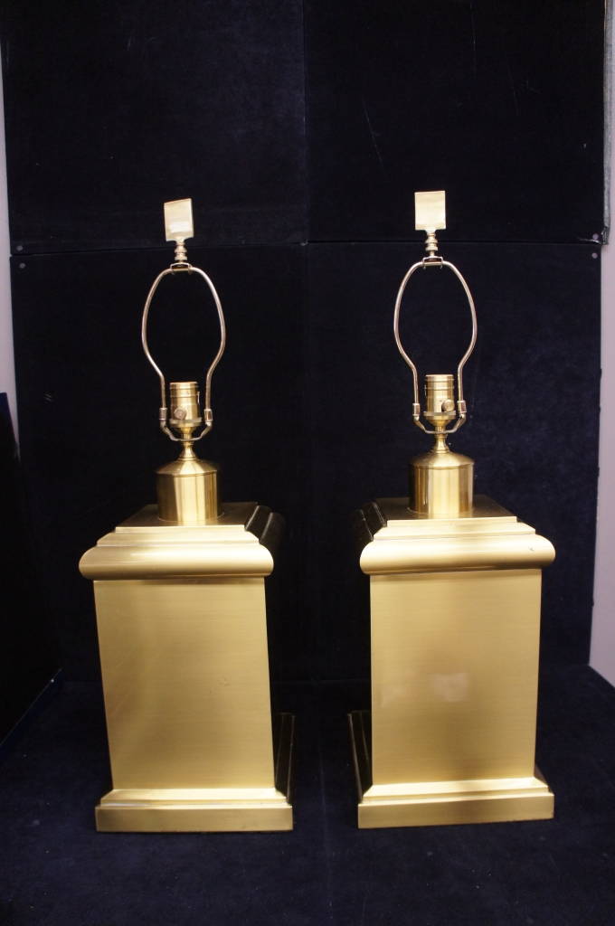2 Wildwood Square Canister Lamps Hand Formed Brass Base 29" Light Rare Designer