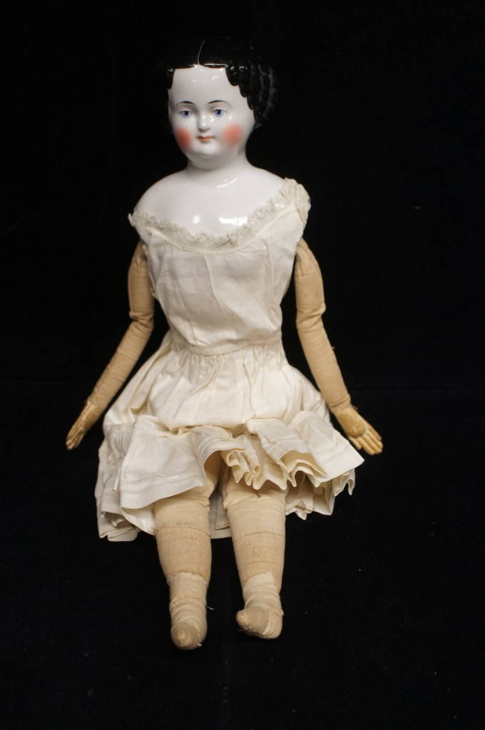 21" Antique China Head Doll Germany? Civil War Era Leather Hands Curls Rare