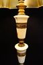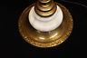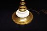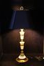 A stunning mid century marble and etched brass table lamp. Features a reticulated brass top and etched scenes on the brass column. A very heavy piece with a great look!