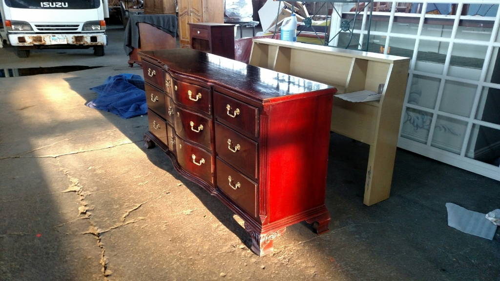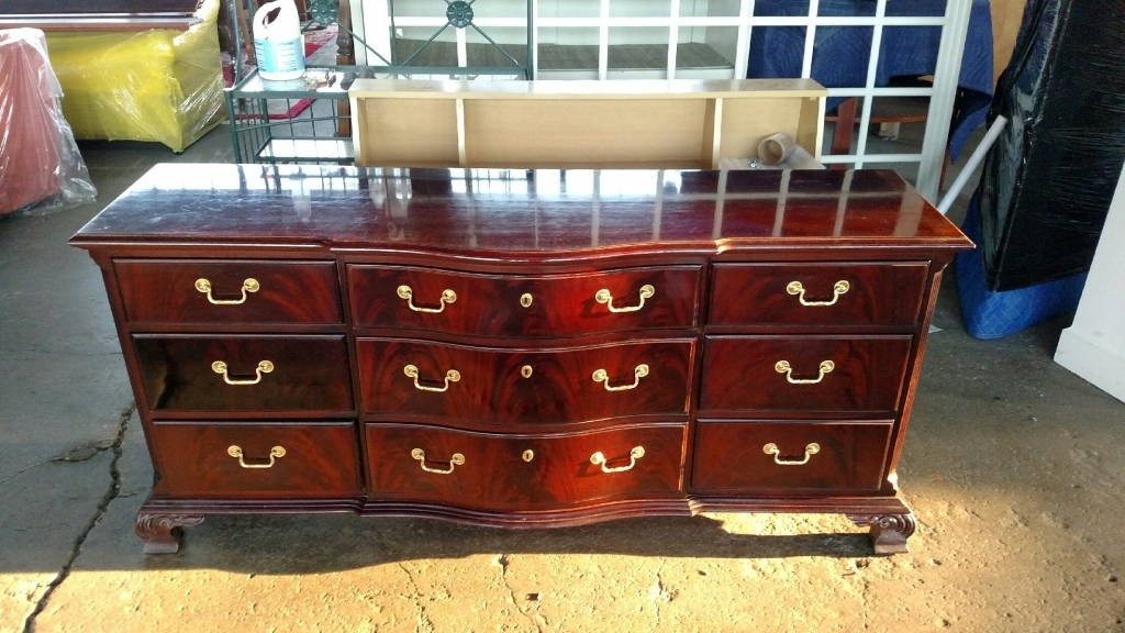 Thomasville Flamed Mahogany 9 Drawer Triple Dresser Bow Front Georgian Style Vtg