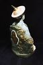 A stunningAsianfigure. Hand painted with a wonderful color and design. Features a man sitting in a chair. The back of the chair is marked. The bottom says made in China with a small red mark