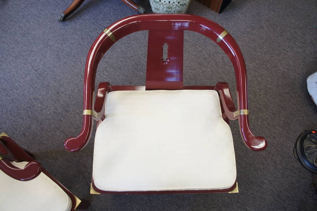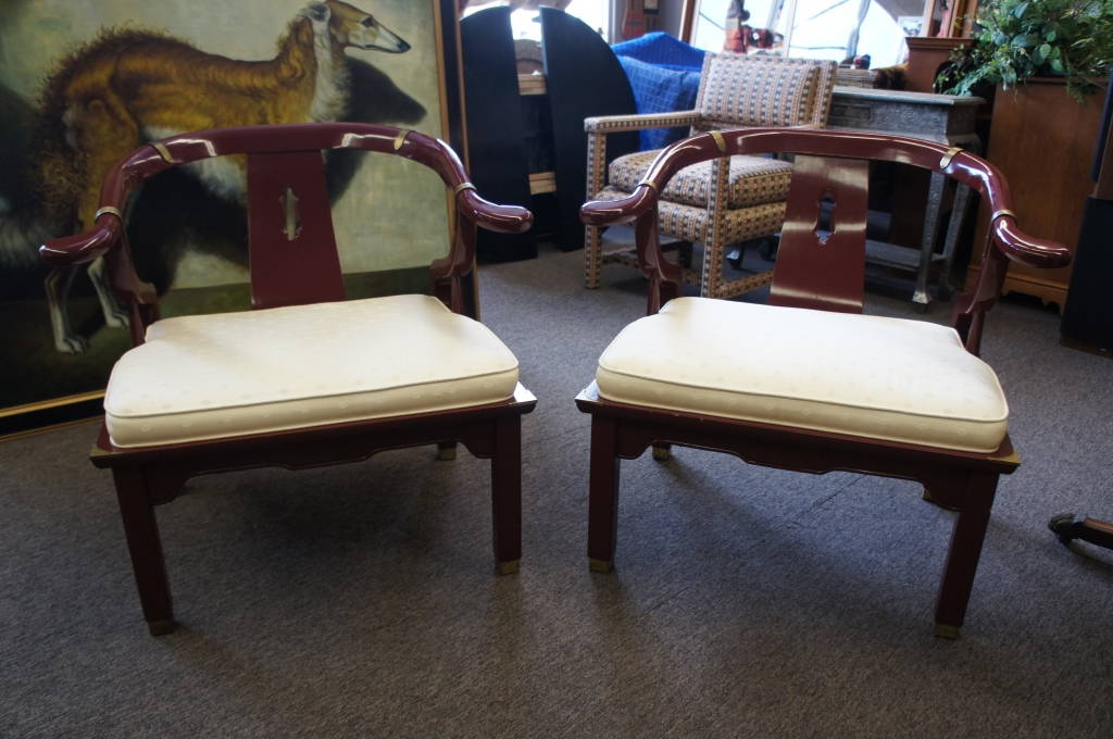 Century Chair Co Red Lacquer Horseshoe Lounge Seats James Mont Campaign Style