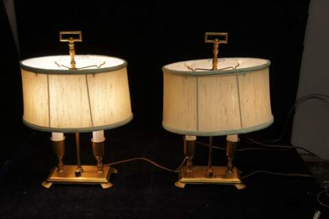 2 Vintage John Alden Solid Brass Lamps Table Accent Library Bank Light W/ Shades
