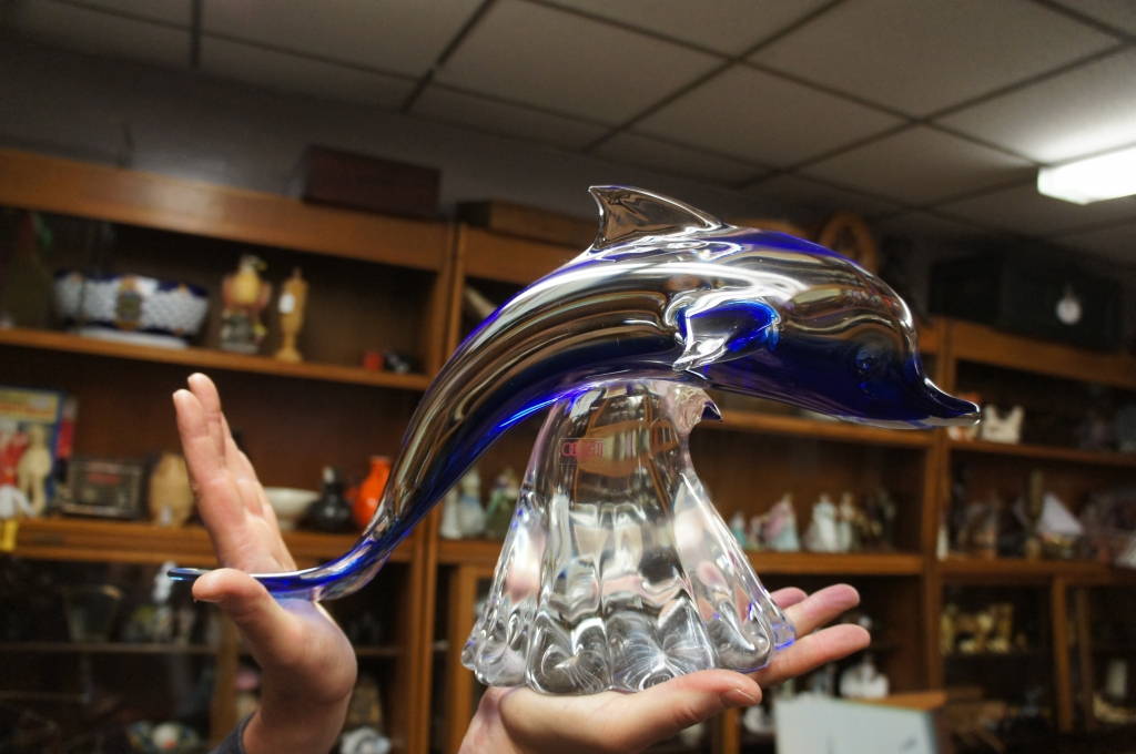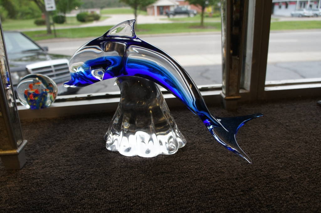 Italian Art Glass Dolphin Elio Raffaeli Signed Oggetti Clear Glass Cobalt Murano