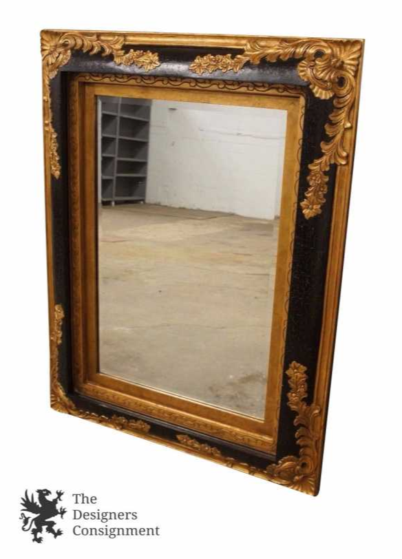 Vtg Hollywood Regency Mirror W/ Caved Flowers Beveled Distressed Designer Decor