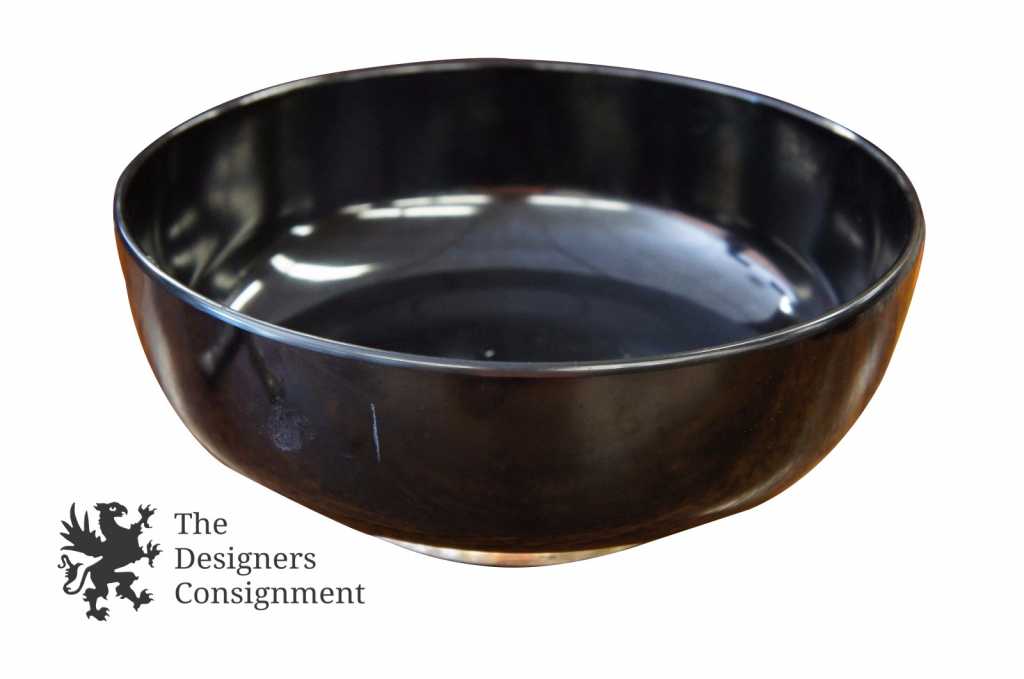 Mid-Century Towle Black Melamine Sterling Mounted Salad Bowl w Serving Spoons