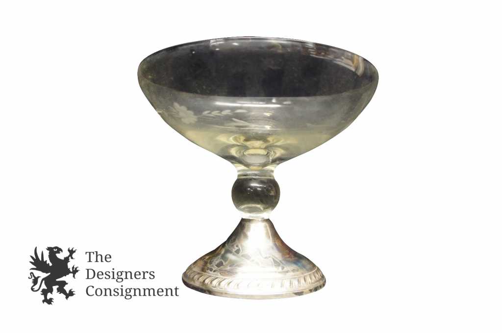 Vintage Sterling Weighted Glass Floral Etched Compote Dutch Footed Candy Dish