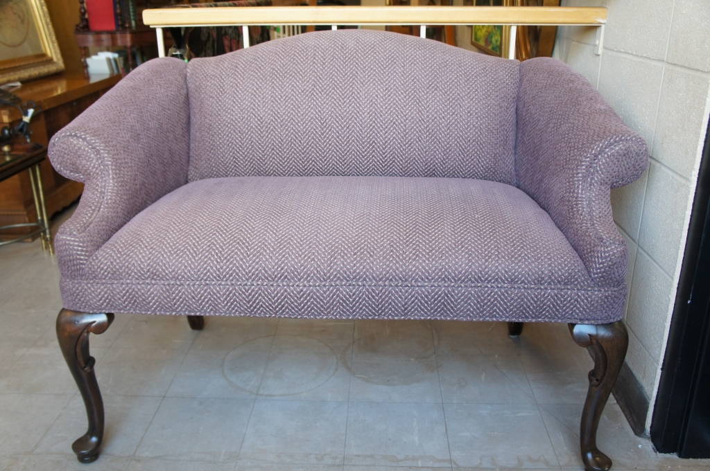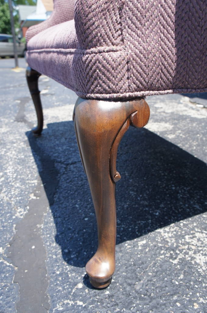 Stunning Queen Anne Style Love Seat Purple Upholstery Mahogany Legs Sofa Settee
