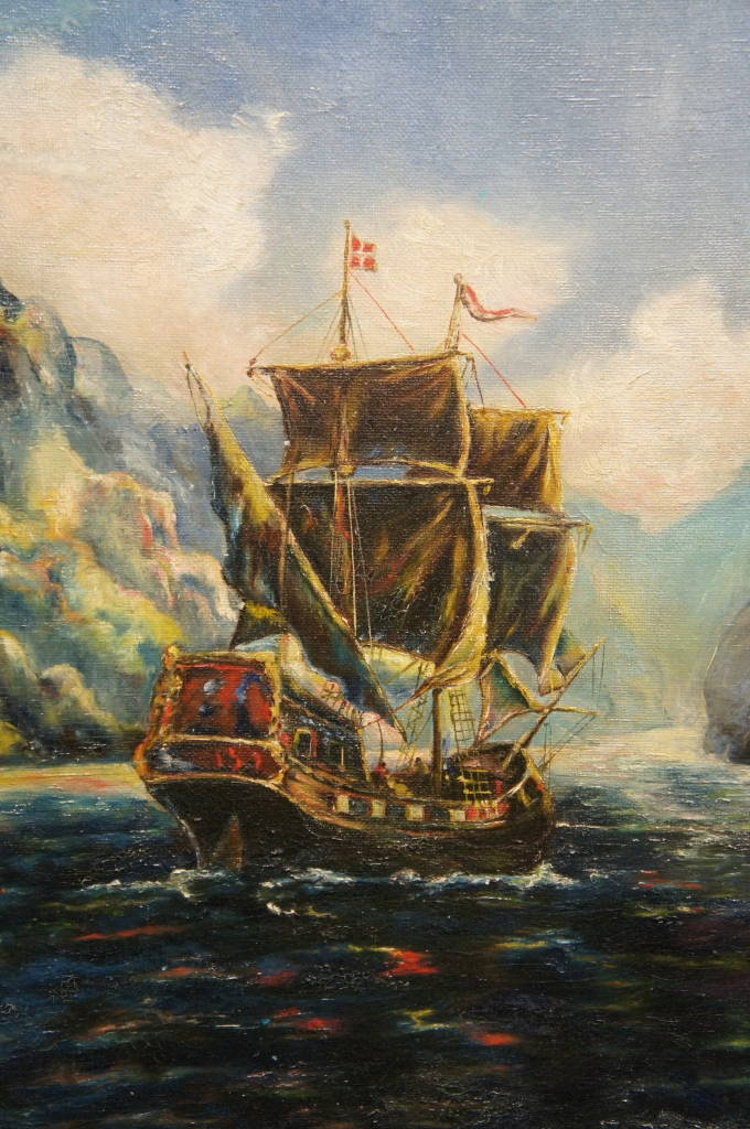 19th Century Style European Seascape Pirate Galleon Oil Canvas Ocean Sail Boat