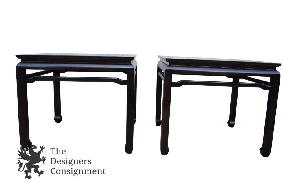 2 Century Furniture Chin Hua Black Laquer Coffee Side Tables James Mont Style