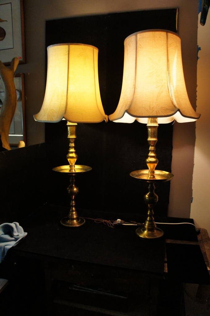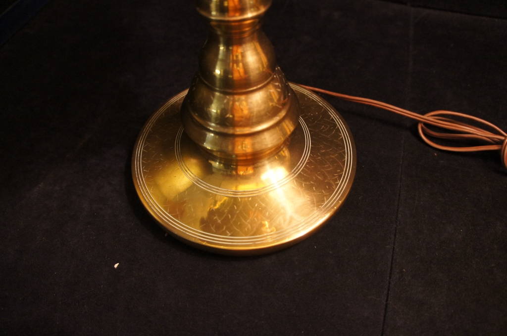 2 Vtg Embossed Brass Oriental Asian Style Table Lamps W/ Ashtray Shade Light