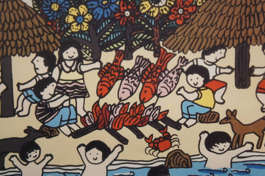 Manuel Lepe Vintage Beach Lithograph Print Little Boys Playing Print Ninos 1983