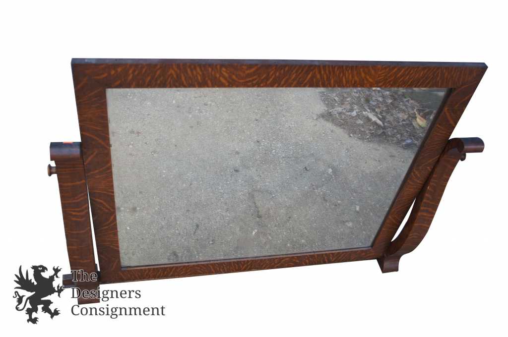 Early 20th Century Federal or American Empire style mirror backing for a dresser. Quartersawn oak with adjustable design.