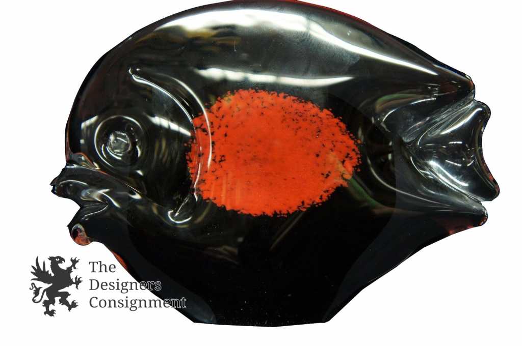 Stunning Hand Signed Red Art Glass Fish Paperweight Piranha Black Red Glass Vtg