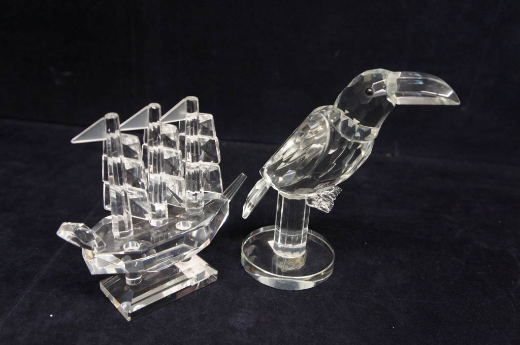 Vintage Shannon Crystal Parrot Bird and Sailboat Ship Glass Display Paperweight