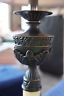Alabaster & Embossed Iron Candlestick Lamp Footed Base Designer 29" Vintage