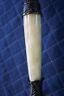 The lamp is in good condition. It has wear and needs a new switch. Some of the cording is loose on the shade, and there are a few light marks
