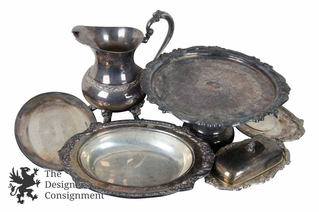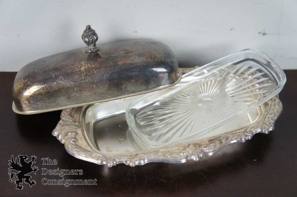 The pieces are in good condition, but could also use a cleaning. The butter dish also includes the glass inlay.