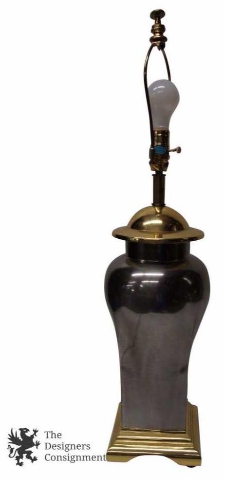 The lamp is in fair condition from everyday use. Functional and includes harp.