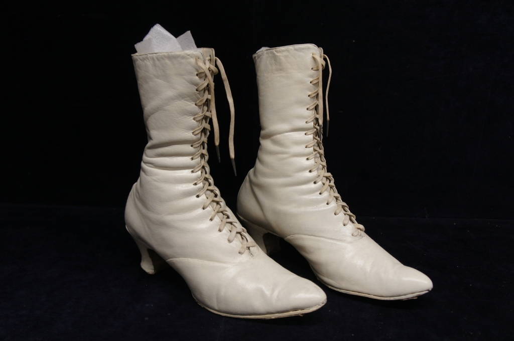 Antique Victorian High Top Louis Heel Lace Up Leather Painted Boots Heels Ladys