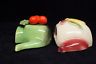 Good condition, the lemon wall pocket has a hairline crack. Both have crazing.
