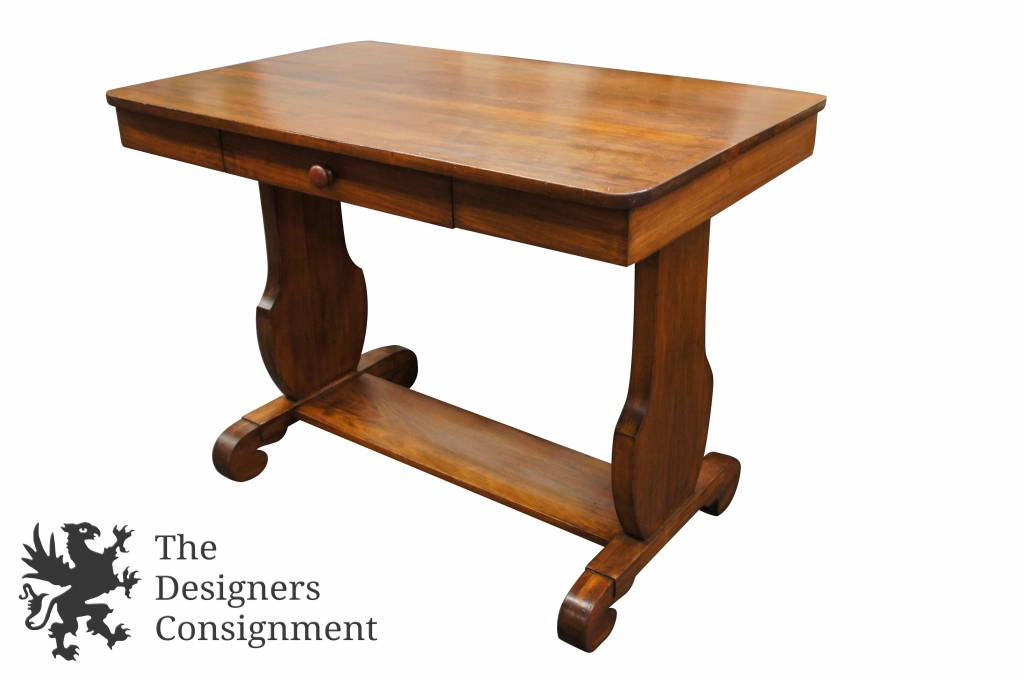 Early 20th Century Jacobean Style Library Hall Table Maple Desk W/ Trestle 40