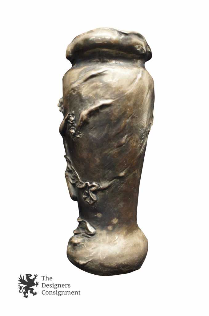 Rare Art Nouveau Antique Silver Overlay Pottery Bud Vase High Relief Figural 7