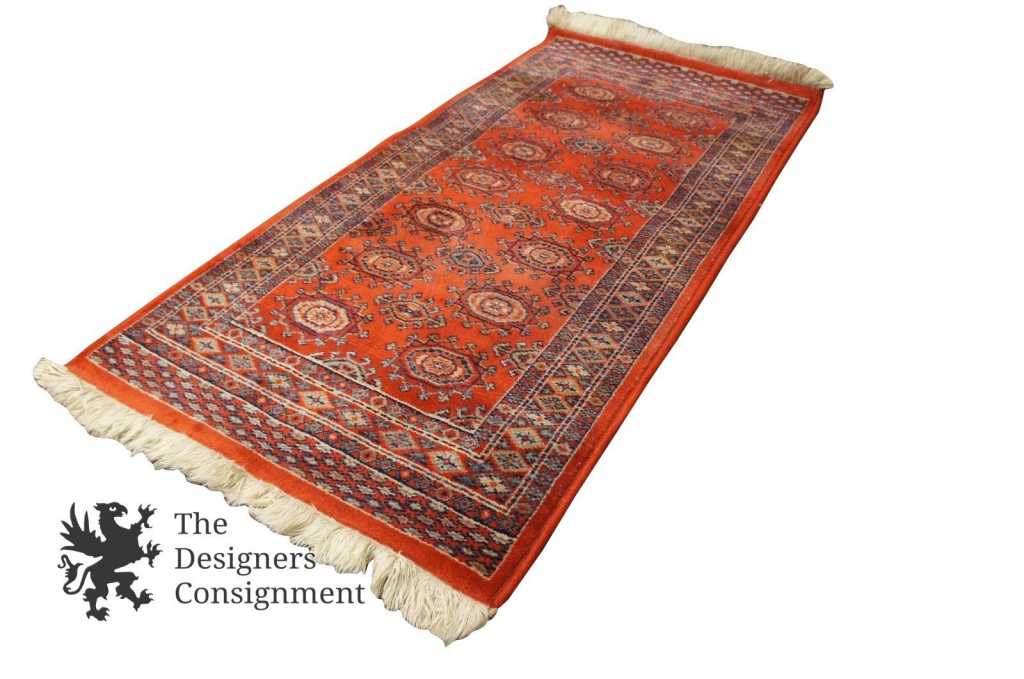 100% Wool Belgium Made Geometric Area Rug Runner 2.1' x 4.5 Oriental Design Red