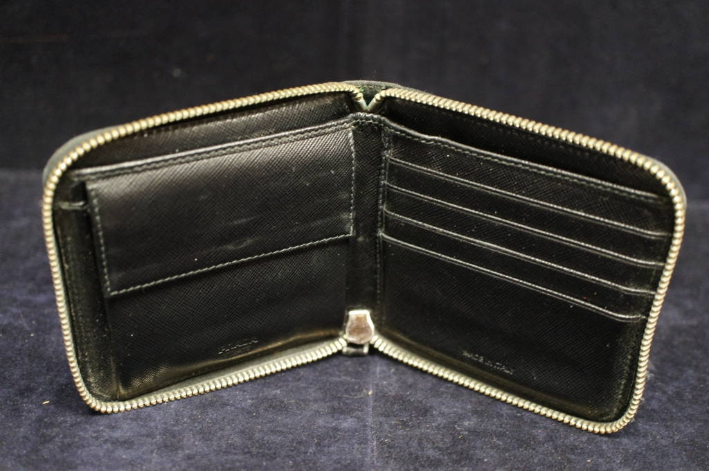 Authentic Prada Nylon & Leather Full Zip Mens Billfold Wallet Travel Black Vtg
