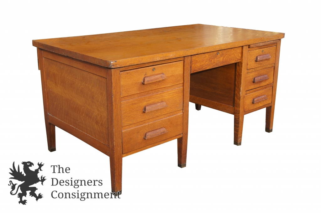 Early 20th Century Antique Quartersawn Oak Executive Desk W/ Type Writer Drawer