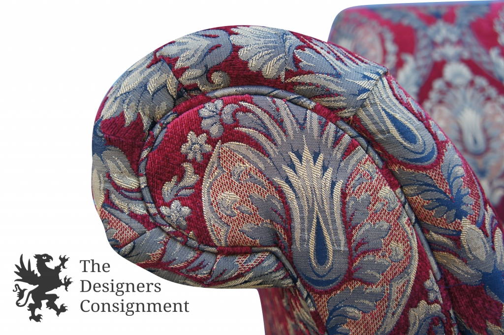 Regency Style Red & Gold Love Seat 72" Settee Mahogany Bullion Designer Sofa Vtg