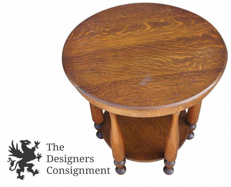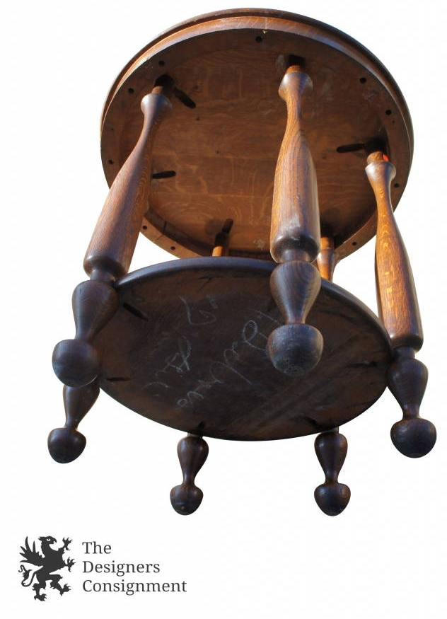 Mid Cent. Quartersawn Oak Mission Style Drum Table Spindle Accent Round Bat Vtg
