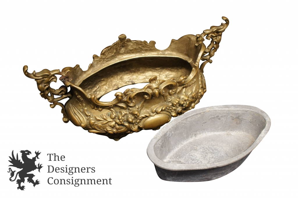Rare Antique Art Nouveau 16" Gilt Brass Jardiniere Planter Centerpiece Repousse