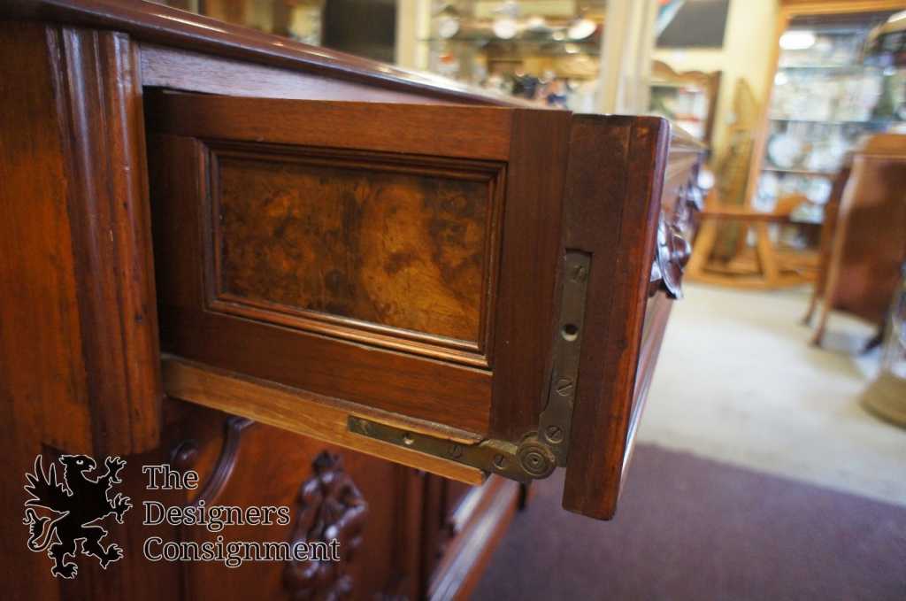 A beautiful piece of 19th century furniture. This butlers secretary was made from Walnut and features Birdseye maple on the interior portion of the writing desk. Capped off with carved accents to really make it stand out.