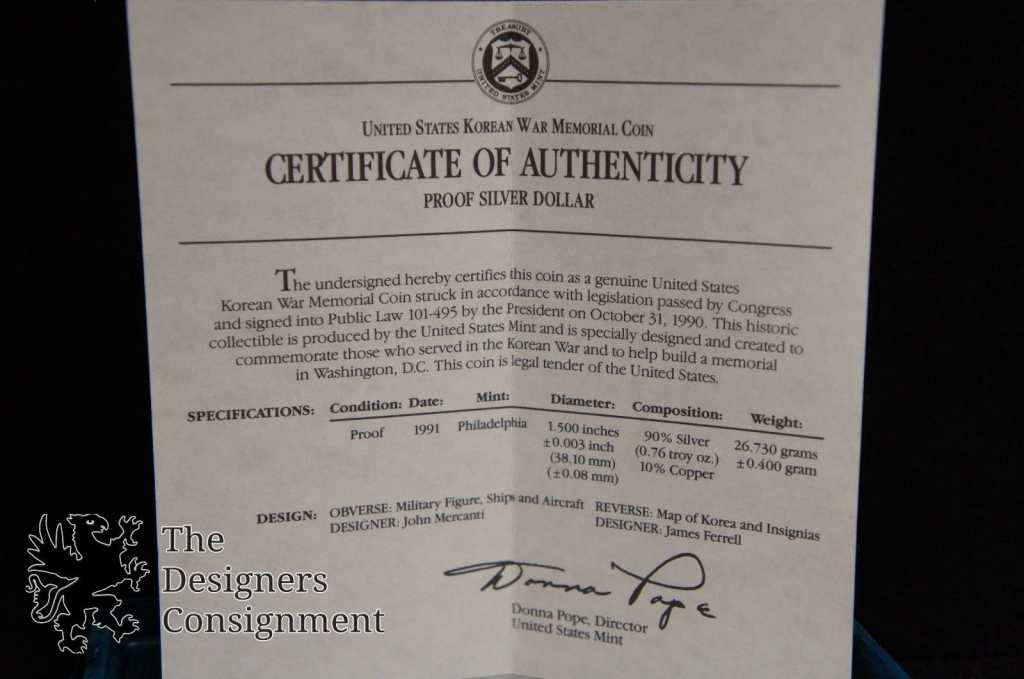 1991 Korean War Memorial Commemorative Proof Silver Dollar Coin With Case