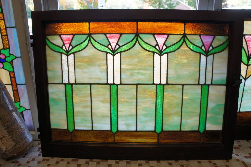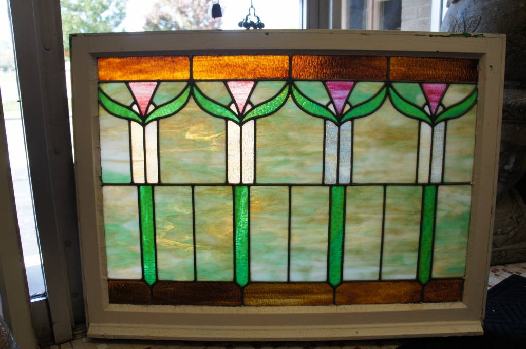 Early 20th Century Leaded Slag Glass Stained Window Panel Architectural Salvage