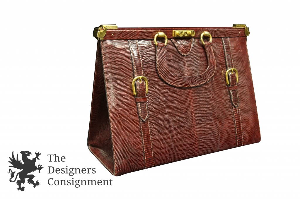 Classic Mark Cross French Lizard Skin Hand Bag Purse Brass Accent Vtg Designer