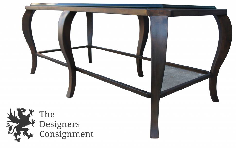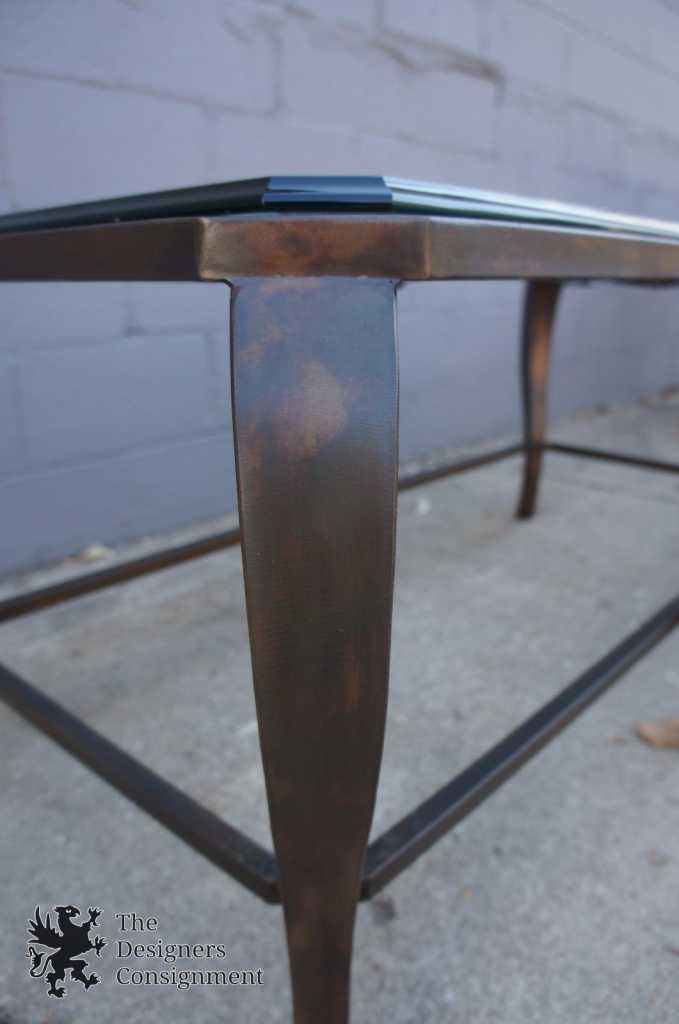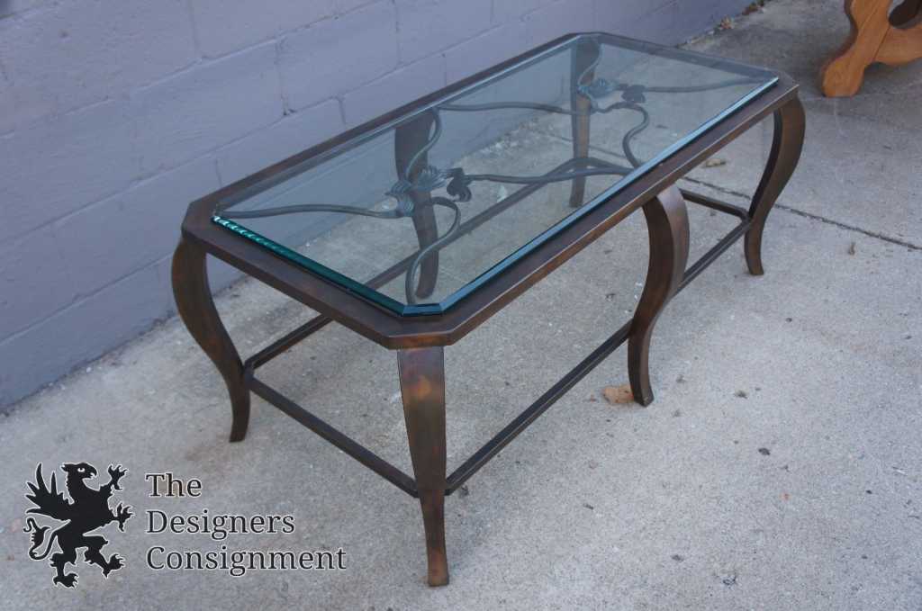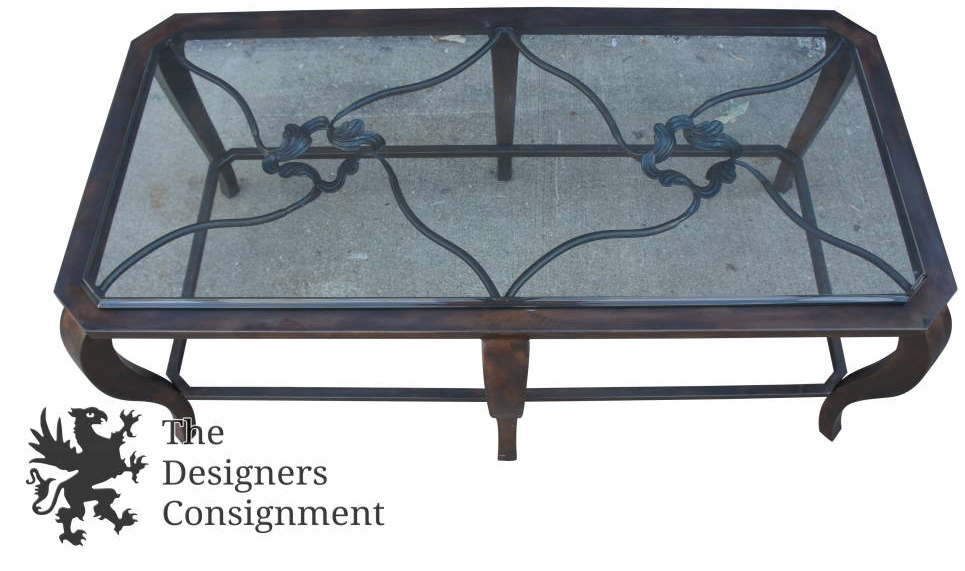 Stunning Contemporary Glass Top Coffee Table Cocktail Floral Accent Metal Base