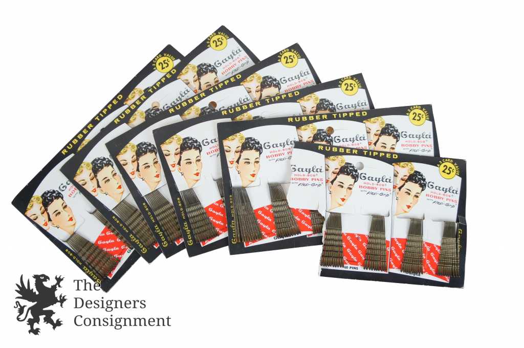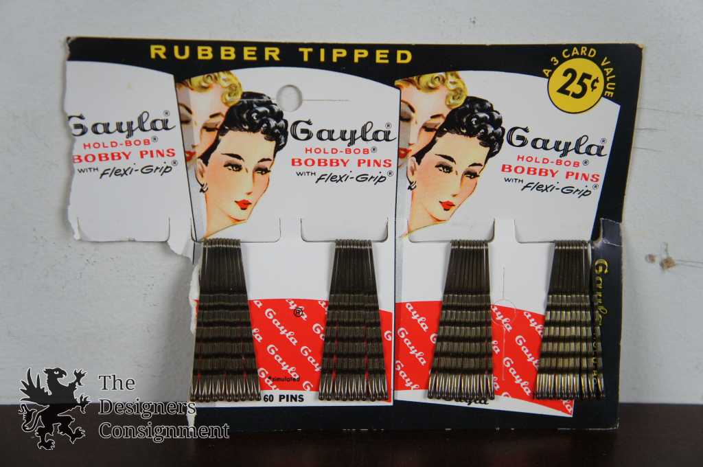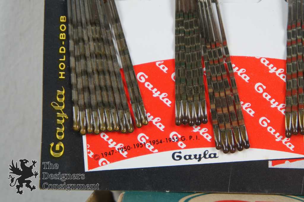 Vintage 1950's Gayla Hold-Bob Bobby Pin Box with 5 3/4 60-Pin Sheets Hair Retro
