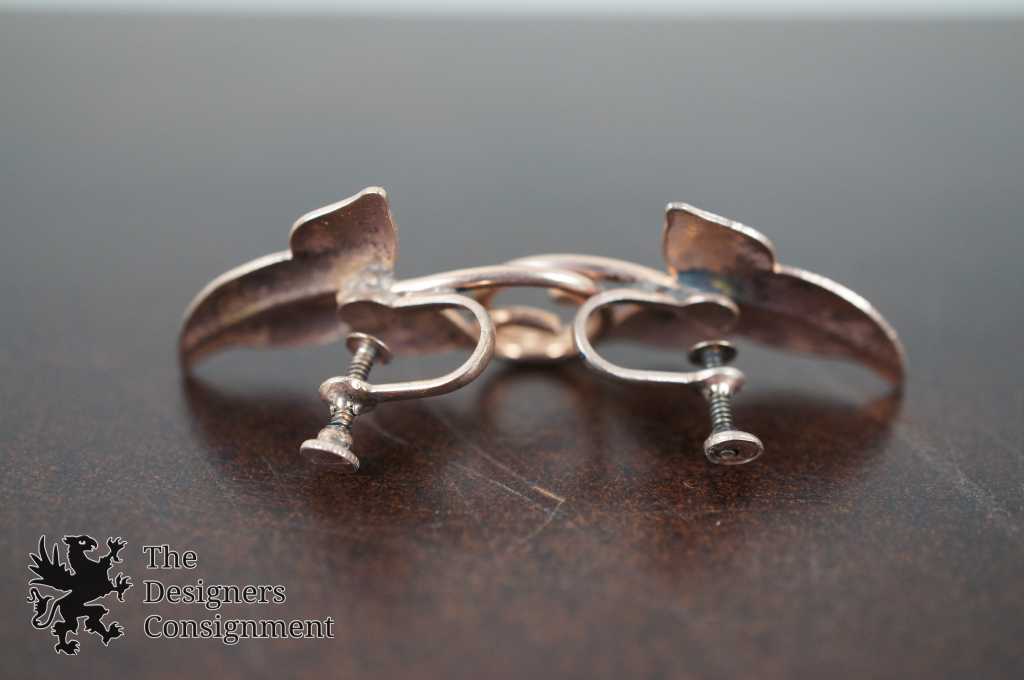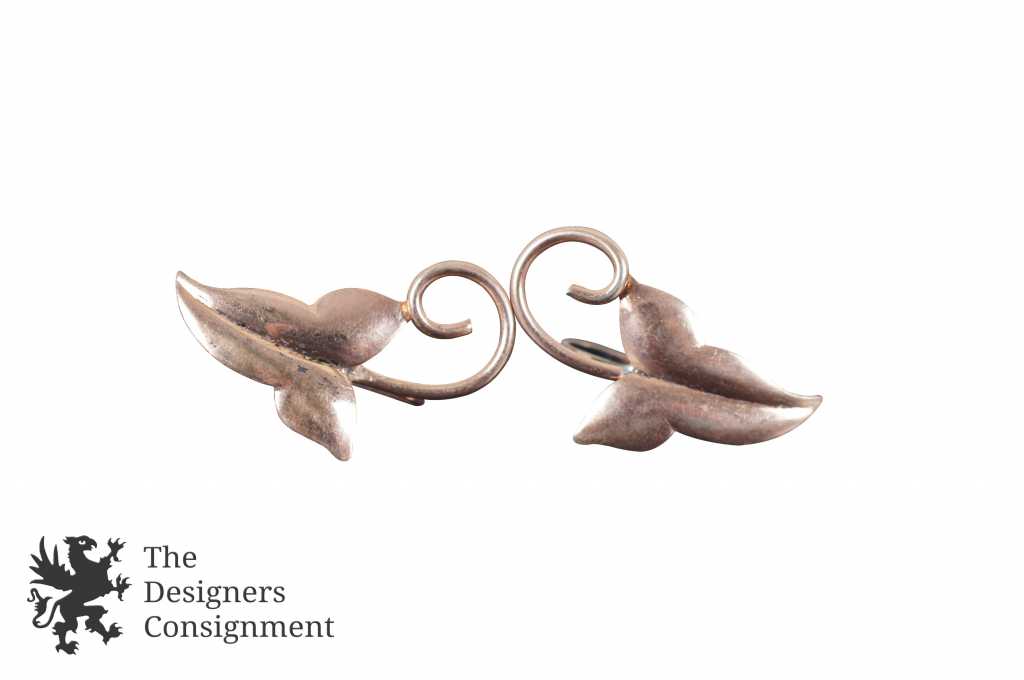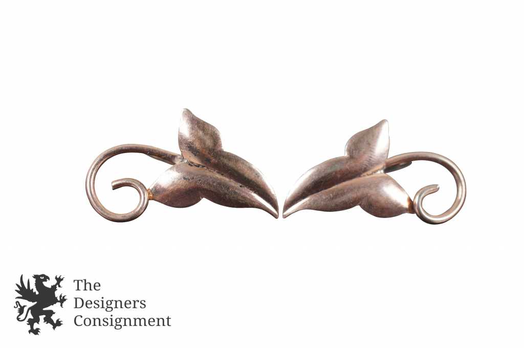 Elegant Brass Leaf Shaped Vintage Screw Back Earrings Estate